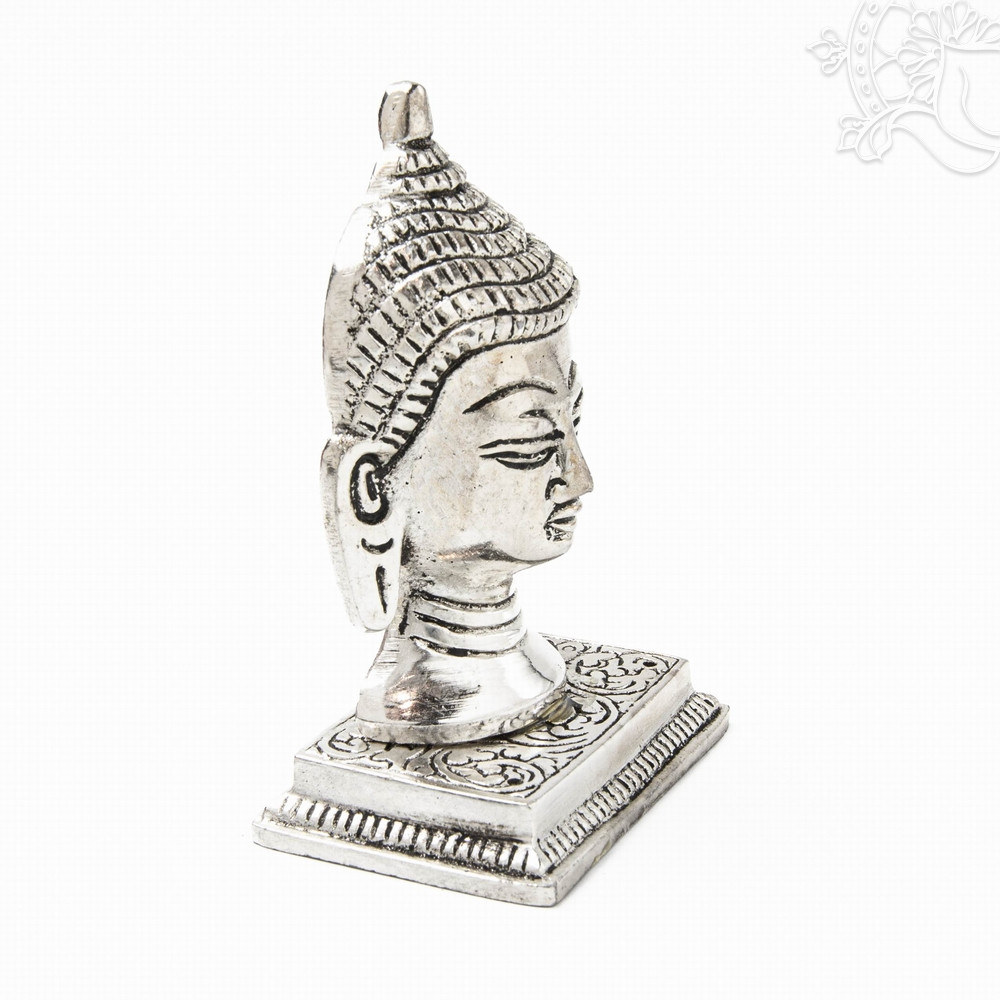 A 10 cm magas Buddha fej fémből készült, finoman díszített talapzattal, amely kiemeli a figura letisztult és békét árasztó megjelenését. A Buddha-fej az éberséget, a megvilágosodást és a tudat tisztaságát jelképezi, ezért gyakran helyezik el otthonokban vagy munkahelyeken a belső egyensúly erősítésére. A szobor keleti művészeti hatásokat tükröz, időtlen formája pedig jól illeszkedik modern és hagyományos terekbe egyaránt. Kompakt mérete miatt könnyen elhelyezhető polcon, íróasztalon vagy meditációs sarokban.
