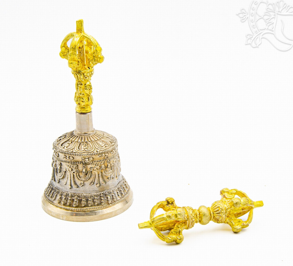 Ez a prémium minőségű, kézzel készült réz csengő és vadzsra szett a tibeti rituálék elengedhetetlen eszköze. A csengő hossza 12 cm, átmérője 6 cm, míg a vadzsra 8 cm hosszú. A csengő a bölcsesség, a tudás és a női energia szimbóluma, míg a vadzsra az erőt, a határozottságot és a férfi energiát testesíti meg. Együttes használatuk a kettő egységét és a megvilágosodás útját jelképezi a buddhista gyakorlatokban.