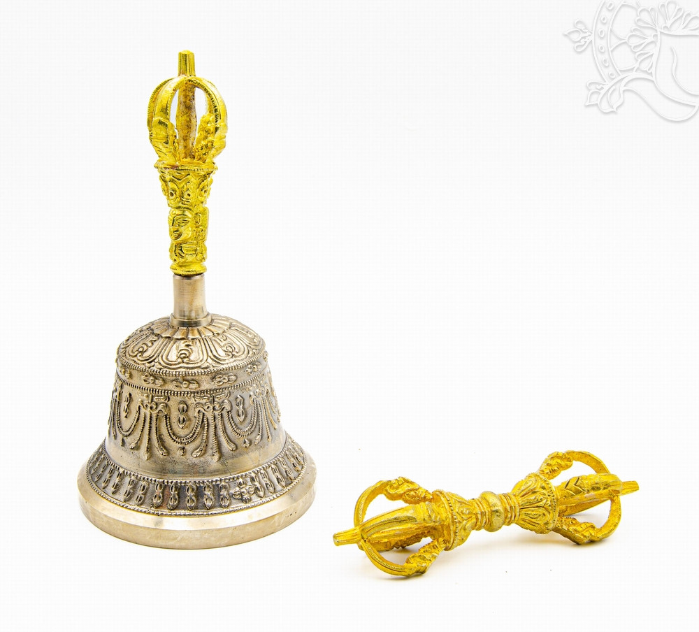 Ez a prémium minőségű, kézzel készült réz csengő és vadzsra szett a tibeti rituálék elengedhetetlen eszköze. A csengő hossza 18 cm, átmérője 9,5 cm, míg a vadzsra 12 cm hosszú. A csengő a bölcsesség, a tudás és a női energia szimbóluma, míg a vadzsra az erőt, a határozottságot és a férfi energiát testesíti meg. Együttes használatuk a kettő egységét és a megvilágosodás útját jelképezi a buddhista gyakorlatokban.