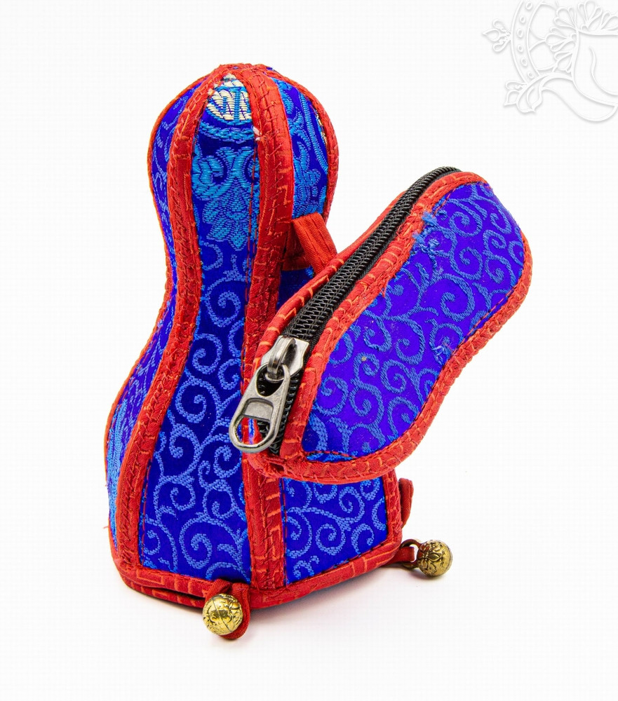 Ez a kézzel készült csengő és vadzsra tartó ideális a szertartási eszközök biztonságos és méltó tárolásához. A csengő tartó része 13,5 cm hosszú és 7,5 cm átmérőjű, a vadzsra tartó pedig 11,5 cm hosszú, így tökéletesen illeszkedik a hagyományos tibeti csengő és vadzsra méreteihez. A gazdag, színes anyag a tibeti szertartások díszítővilágát idézi, míg a cipzáras kialakítás praktikus és védelmet nyújt a szent tárgyak számára. A nepáli kézműves hagyományokat tükröző tartó nemcsak funkcionális, hanem esztétikus kiegészítője is lehet bármely szertartási kelléktárnak.