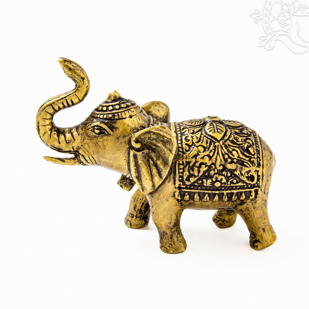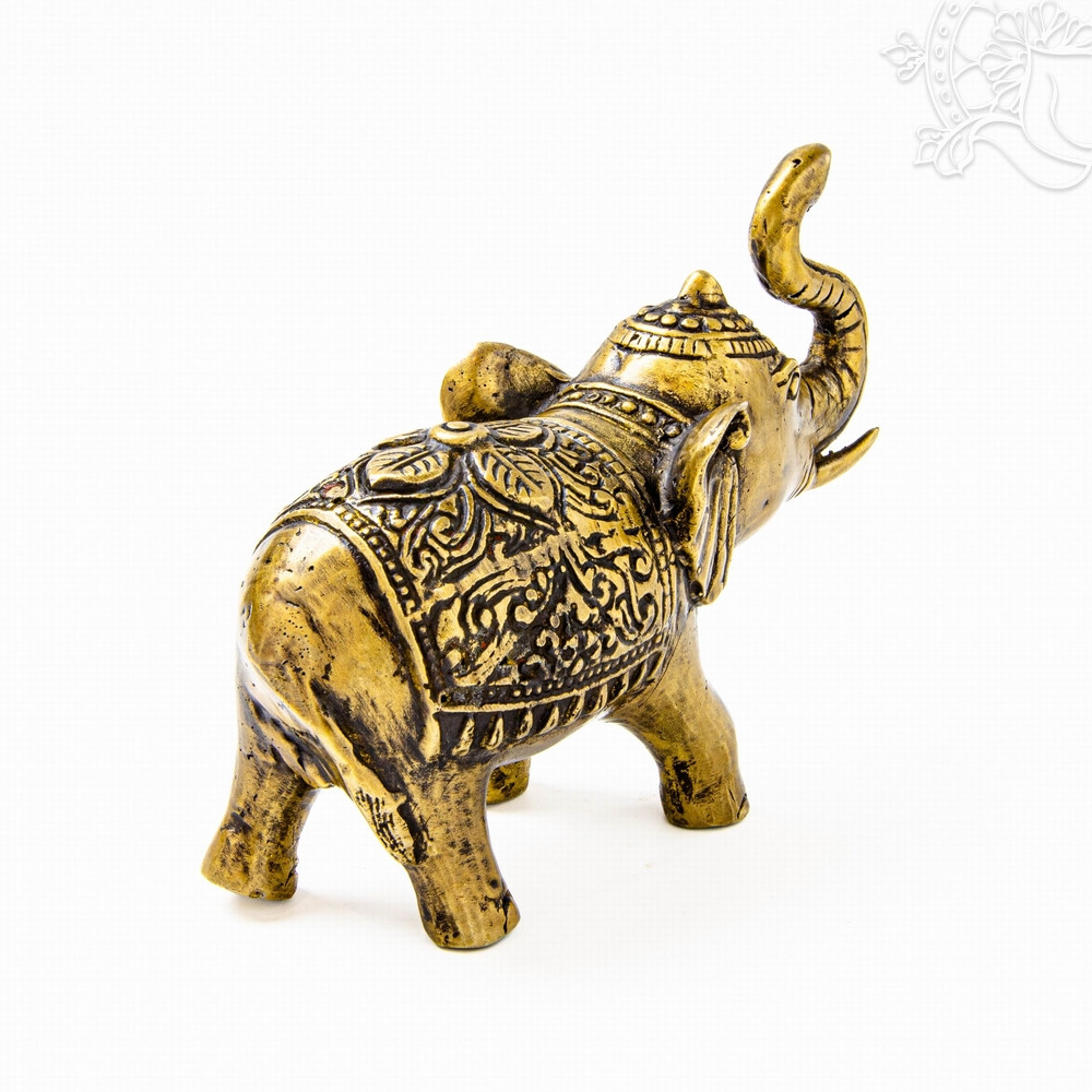 A 13 cm magas és 15 cm hosszú, 280 gramm súlyú matt sárga réz elefánt a keleti kultúrák egyik legkedveltebb jelképét idézi meg. Az elefánt a stabilitás, a hosszú élet és a bölcsesség szimbóluma, míg a felfelé ívelő ormány különösen kedvezőnek számít, mivel a szerencse és a bőség áramlását jelképezi. A testén látható díszes minták a hagyományos indiai és nepáli motívumokat idézik, melyek védelmet és jó energiákat társítanak az elefánthoz. Harmonikus jelenléte otthonban és munkahelyen egyaránt értéket képvisel.