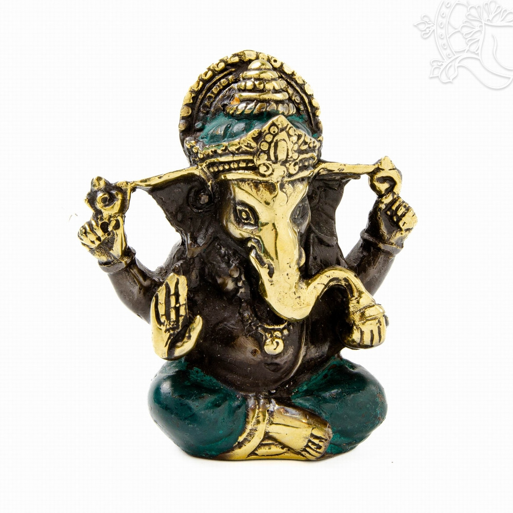 Ez a 9 cm magas Ganesha réz szobor aranyszínű díszítéseivel és enyhén patinás felületével klasszikus, mégis karakteres megjelenést kapott. A részleteiben gazdag faragás Ganesha ikonikus alakját emeli ki, aki a hindu hagyomány egyik legkedveltebb istensége, a bölcsesség, a siker és az akadályok elhárításának megtestesítője. A kis méret különösen alkalmas arra, hogy otthoni oltárra, íróasztalra vagy ajándékként kerüljön, ahol védelmező és inspiráló jelenléte emlékeztet a belső erőre és a jó szándékok erejére.