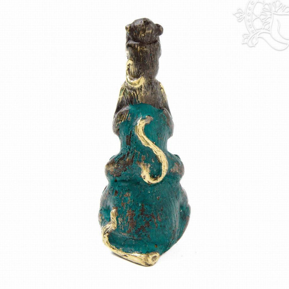 Ez a 10 cm magas, rézből készült arany-zöld szobor a híres három bölcs majmot ábrázolja, akik a hagyomány szerint a ne lásd a rosszat, ne halld a rosszat, ne mondj rosszat tanítását hordozzák. A szobor játékos, mégis mély jelentésű megjelenése harmóniát és figyelmességet sugároz, ezért ideális választás azoknak, akik szeretik a szimbolikus tárgyakat az otthonukban. A zöld patina és arany részletek kellemes kontrasztot alkotnak, kiemelve a motívum karakterét. Kiváló ajándék lehet mindazoknak, akik értékelik a buddhista-inspirációjú vagy jelentéssel bíró műtárgyakat.