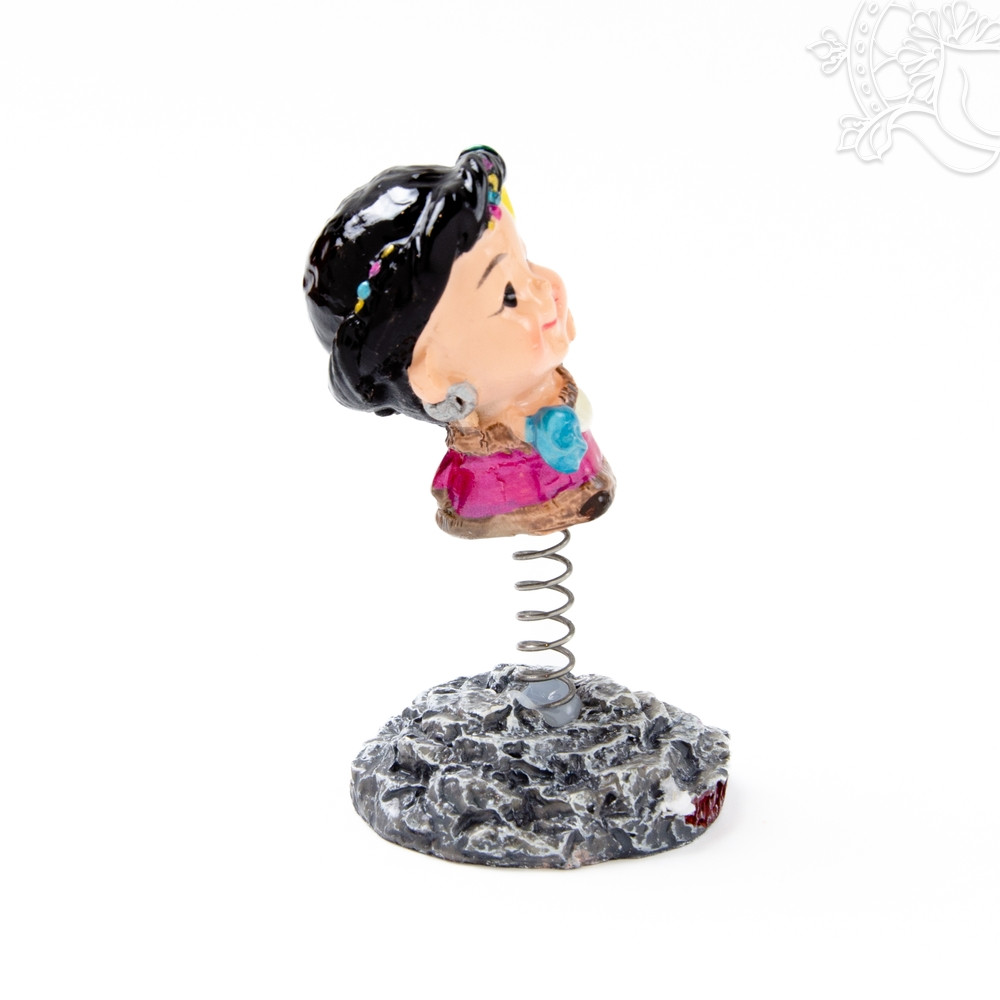 Ez a 7 cm-es rezin (műgyanta) figura hagyományos tibeti népviseletben jelenik meg. Rugós kialakítása miatt menet közben finoman mozog, így kedves és vidám hangulatot teremt az autó műszerfalán.