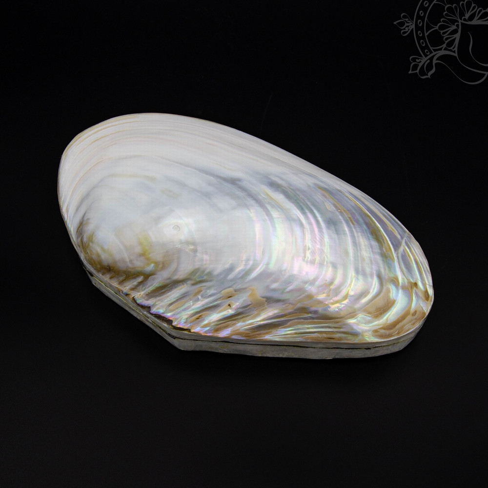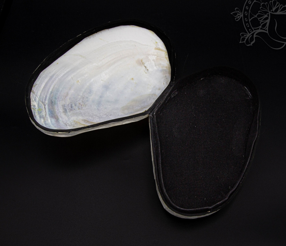 25 cm-es, valódi kagylóból készült ékszertartó doboz, amelynek felülete természetes fehér-krém árnyalatban fénylik. Belseje puha borítást kapott, így ideális nagyobb méretű ékszerek vagy különleges tárgyak tárolására.