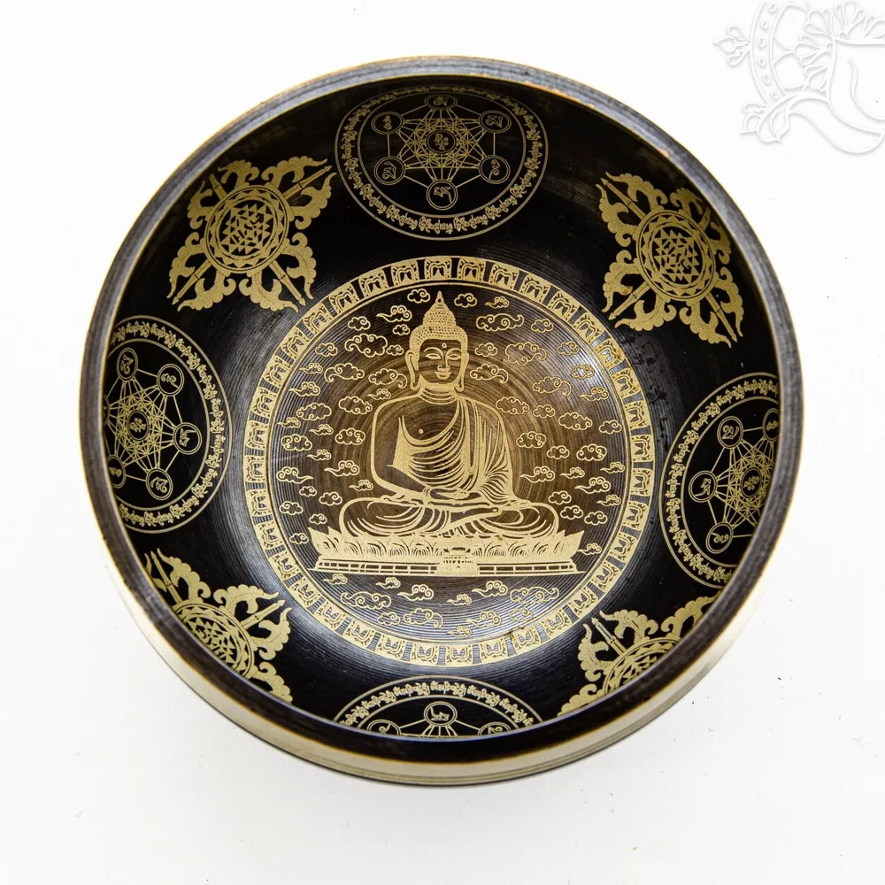 Géppel készített különleges mantrás hangtál, 100-150 gramm súlyú. Különlegességét a kézi munkával elkészített gyönyörű díszítések adják. A hangtál belsejének központi alakja Amitabha Buddha. Hangja magas, tisztán csengő.