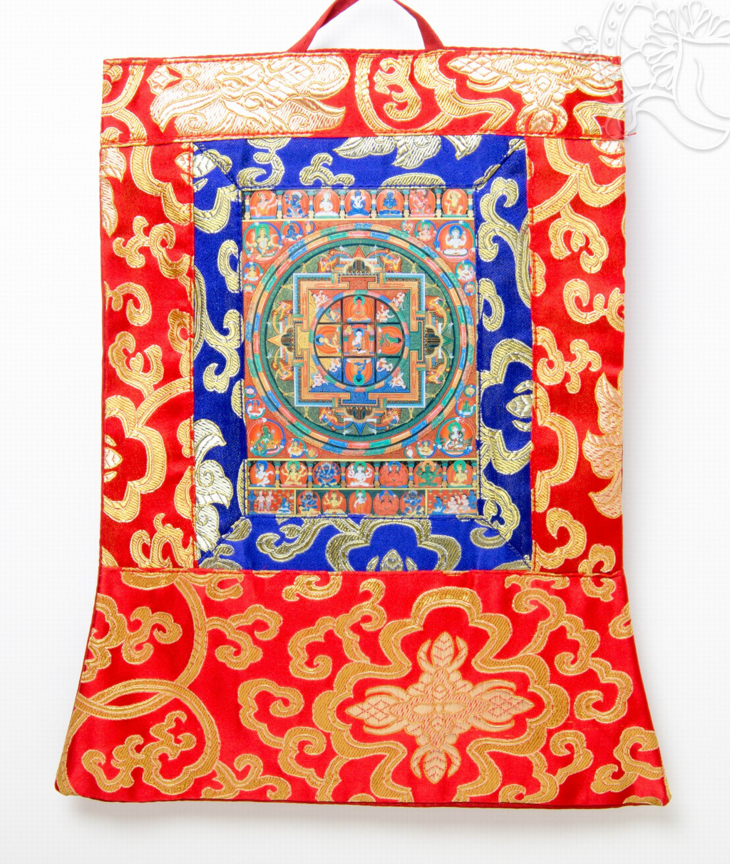 Áldott, brokát, Mandala thanka jellegű falikép. Mérete: 22x31 cm brokáttal együtt. A termék áldott.