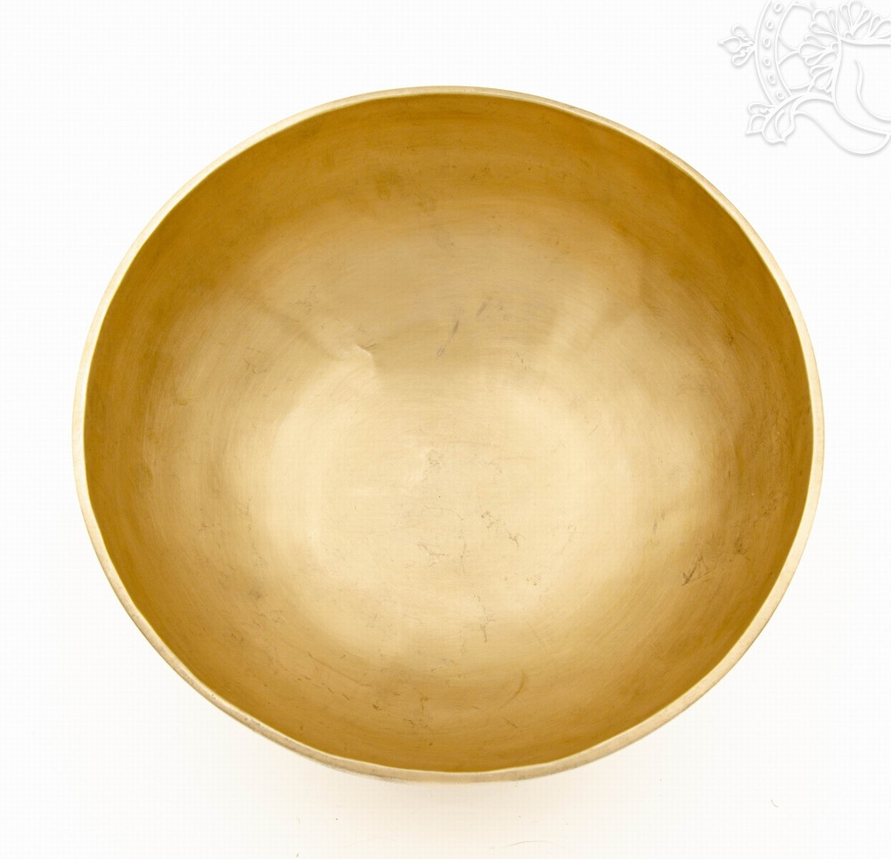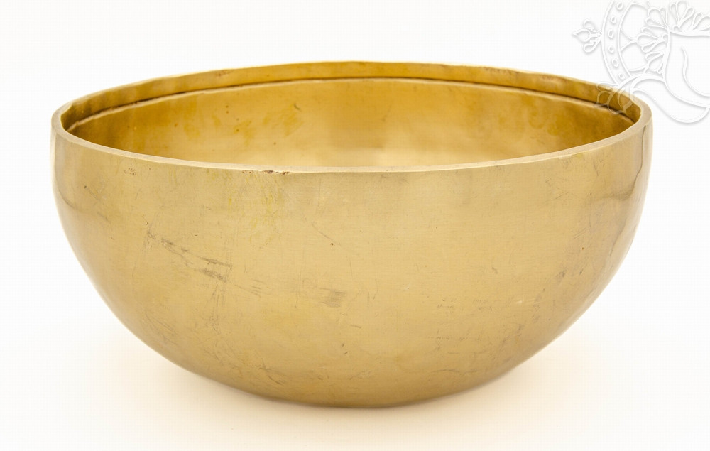 Kézzel kalapált, 7 fémes 1695 grammos sárga hangtál elsősorban az alsó három csakra harmonizálására.
