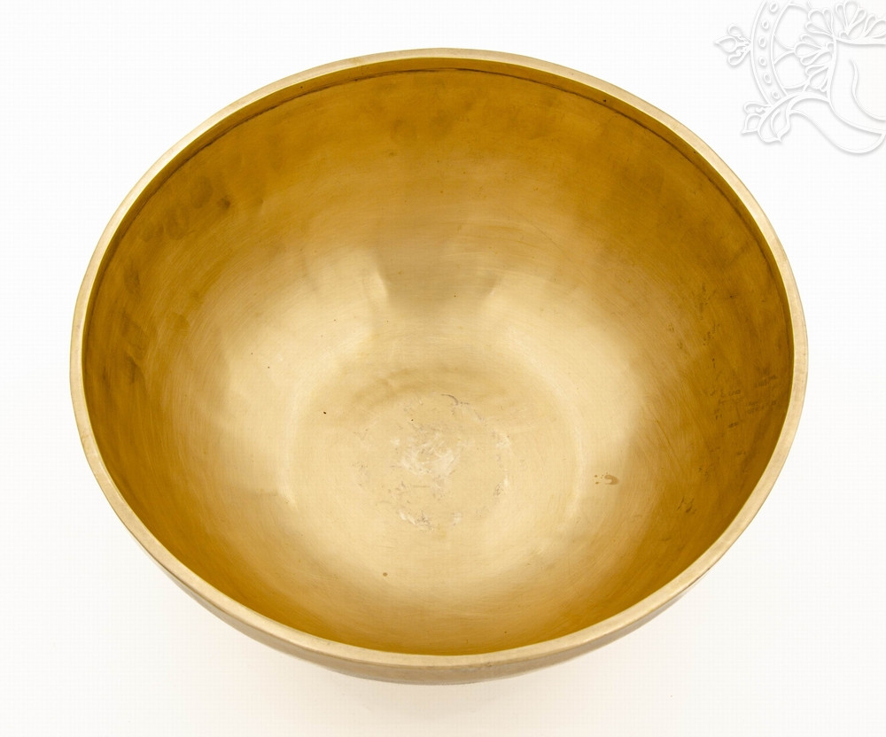 Kézzel kalapált, 7 fémes 1802 grammos sárga hangtál elsősorban az alsó három csakra harmonizálására.