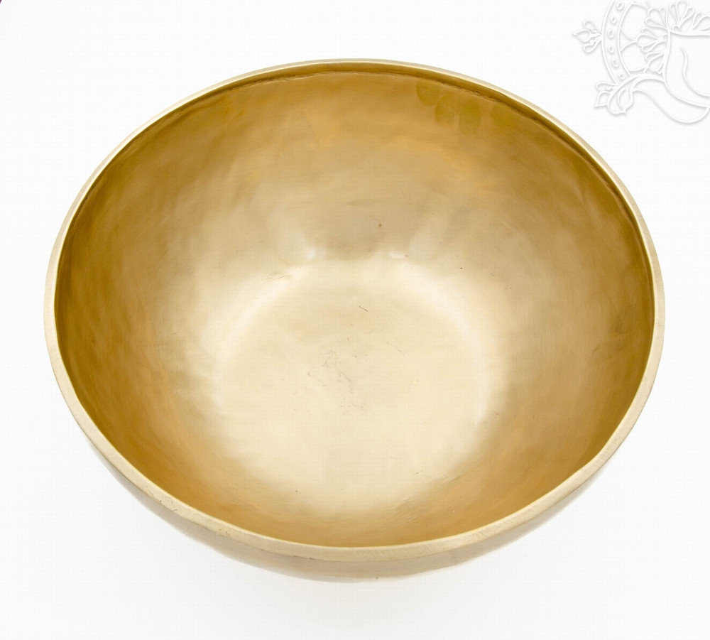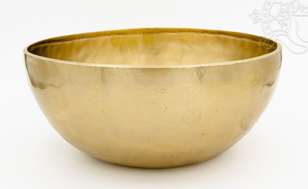 Kézzel kalapált, 7 fémes 2268 grammos sárga hangtál elsősorban az alsó három csakra harmonizálására.