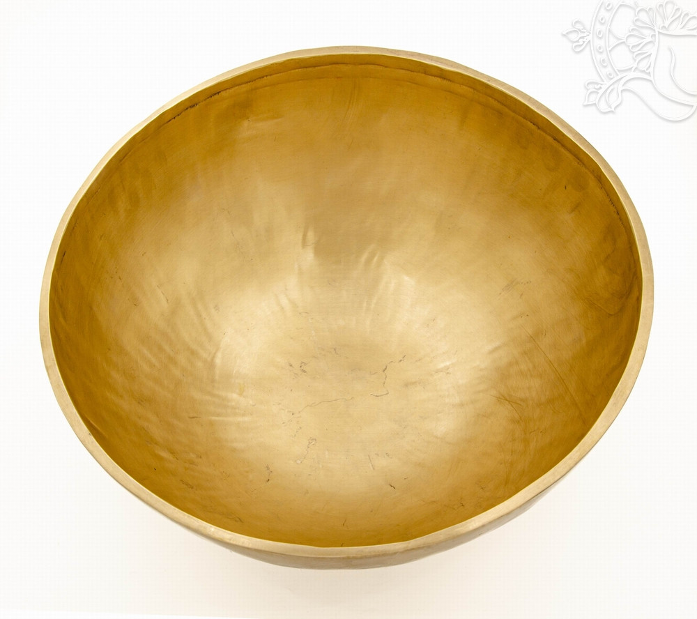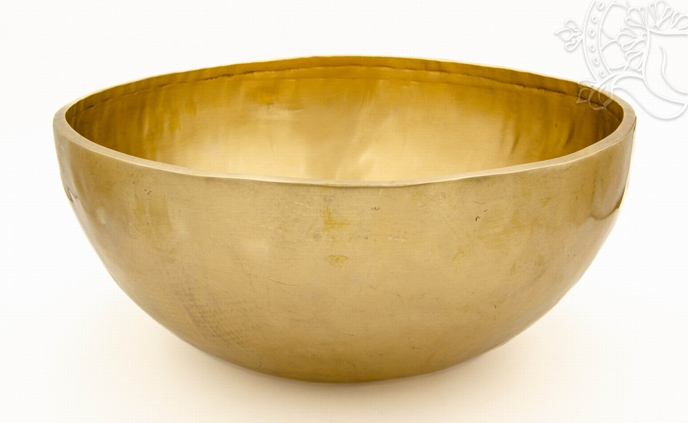 Kézzel kalapált, 7 fémes 3176 grammos sárga hangtál elsősorban az alsó kettő csakra harmonizálására.