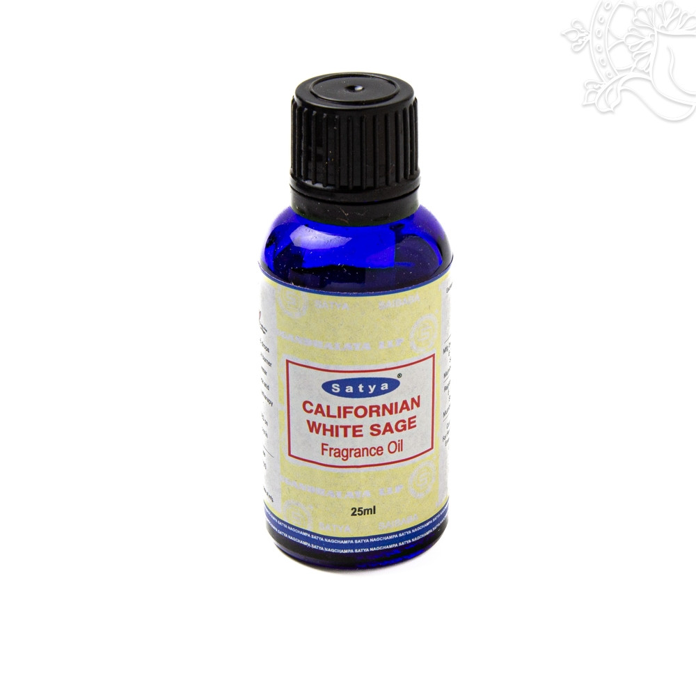 Satya Kaliforniai fehér zsálya illóolaj 25 ml-es üvegben, friss, gyógynövényes fehér zsálya illattal, tiszta illatával segíti a tér energetikai tisztítását és a belső fókusz kialakítását.