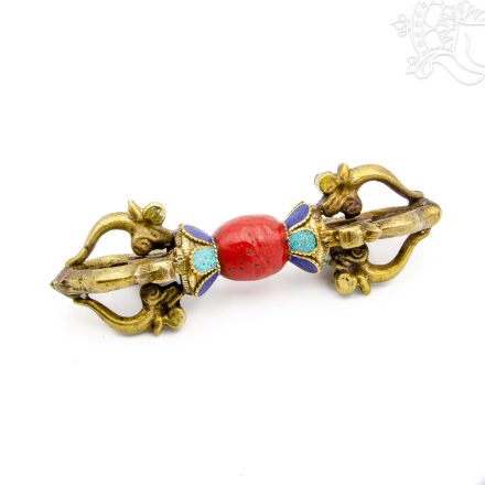 Rézből készült kilenc ágú vadzsra korall berakással, hosszúsága 14 cm, súlya 240 gramm. A termék áldott.