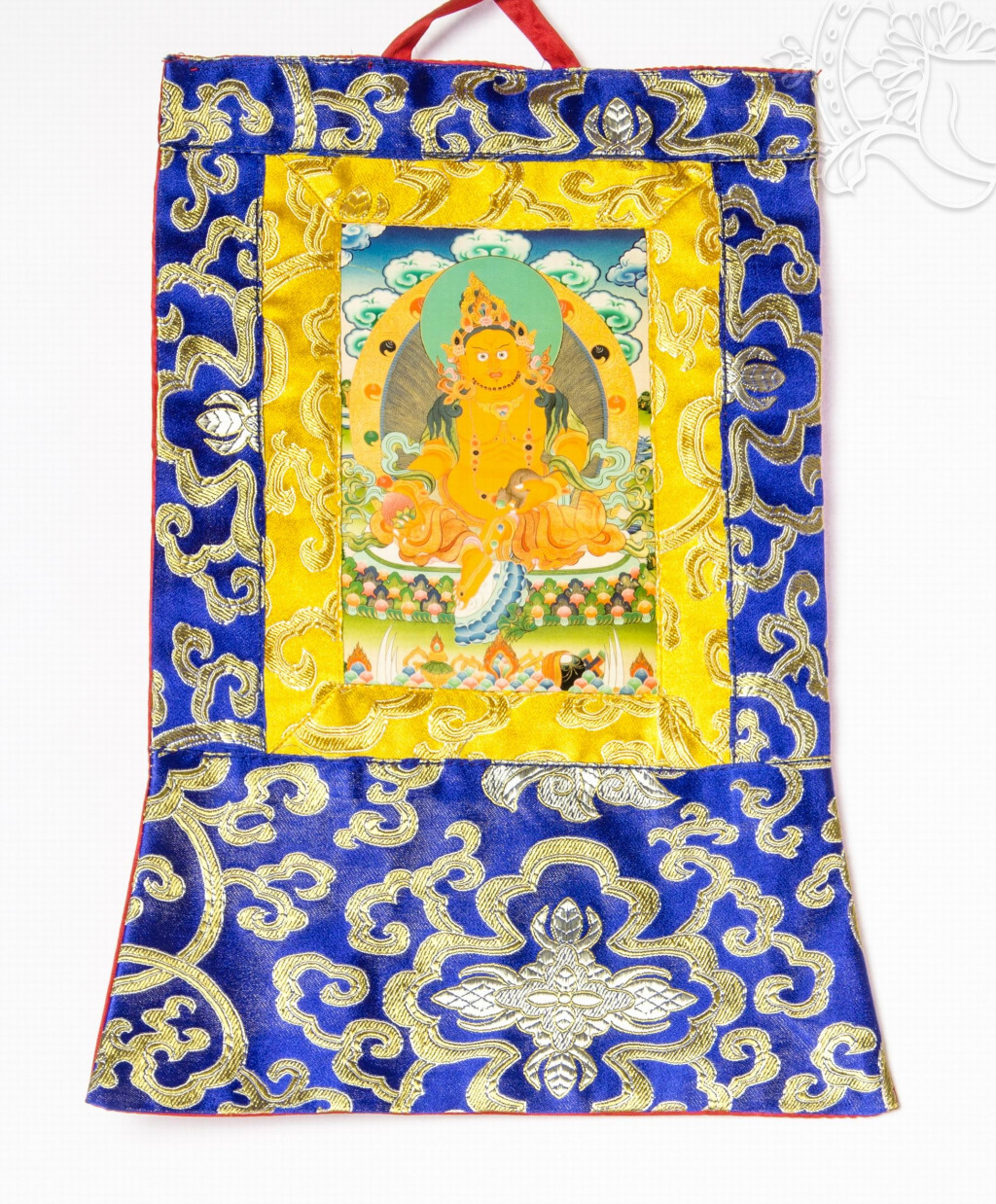 Áldott, brokát, Zambala thanka jellegű falikép. Mérete: 22x31 cm brokáttal együtt. A termék áldott.