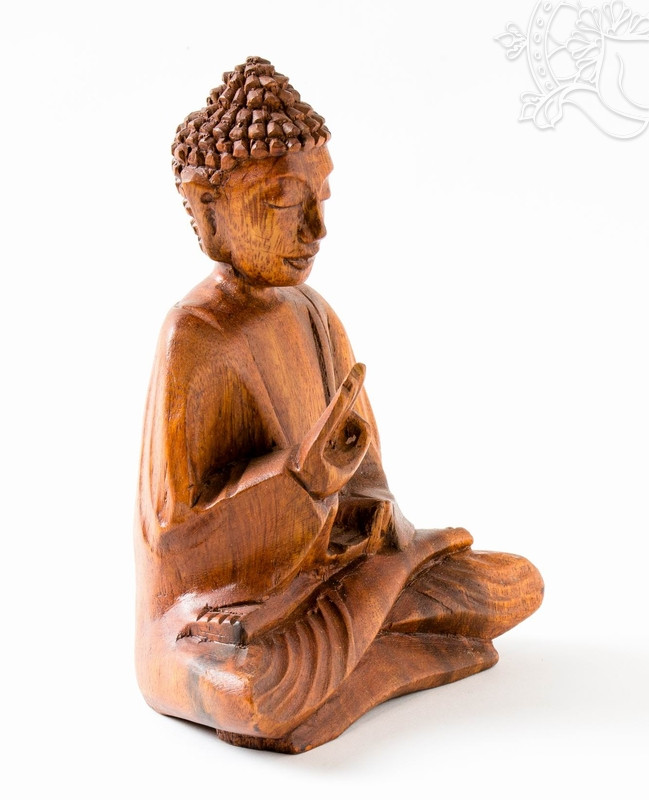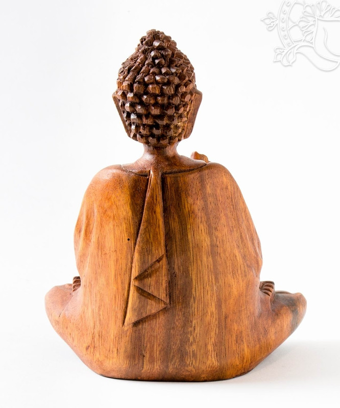 Fából faragott Áldó Buddha szobor. A szobor magassága 16 cm. A szobrok egyedileg készülnek, kisebb különbségek lehetnek az egyes szobrok között.