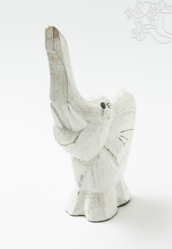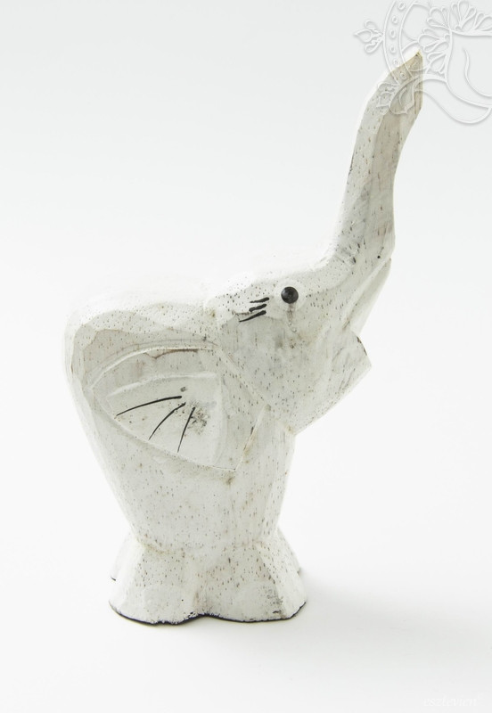 Fából faragott emelt ormányú elefánt szobor. A szobor magassága 17 cm. Az elefánt a siker, az erő, a bölcsesség, a függetlenség, a hatalom, a termékenység, a jámborság, a higgadtság és a hosszú élet szimbóluma.