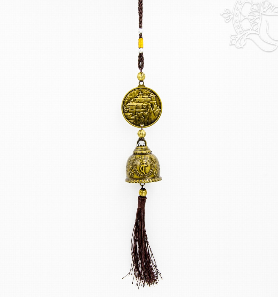 Fémből készült, lógó, középen kétoldalú Shakyamuni Buddha díszítéssel, alul Buddhás csengővel. ...