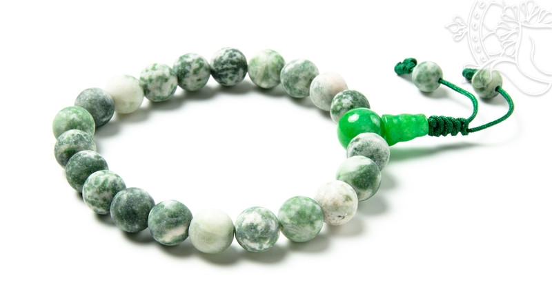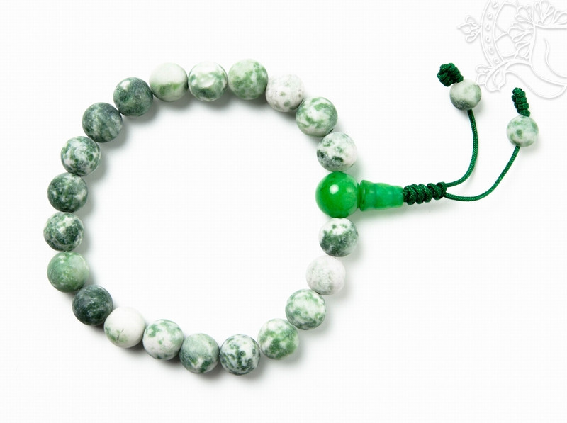 Foltos jade matt csukló mala, gumis - 21 szemes - a kiegyensúlyozottság és az önszeretet köve