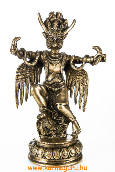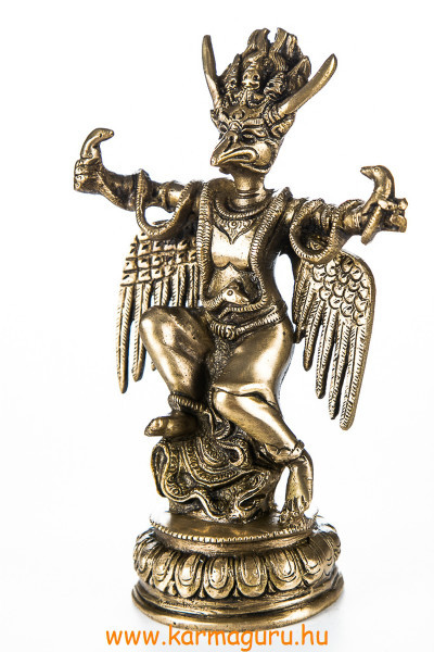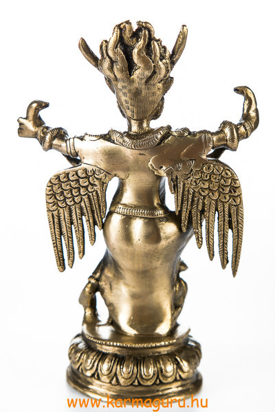 Rézből készült Garuda szobor, matt sárga színű. Magassága 21 cm, súlya 1,35 kg.
