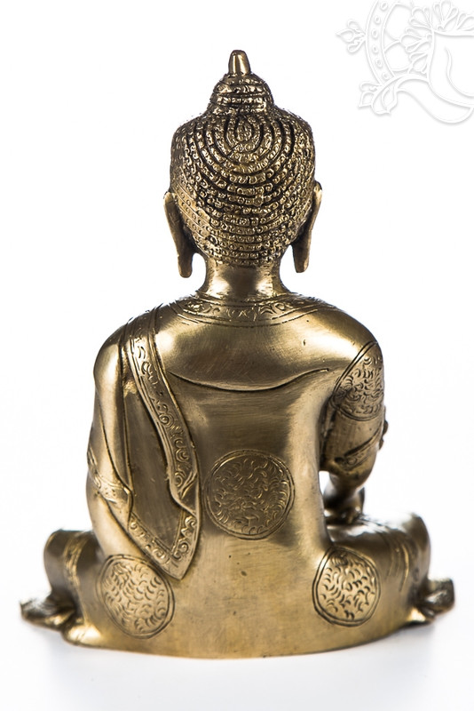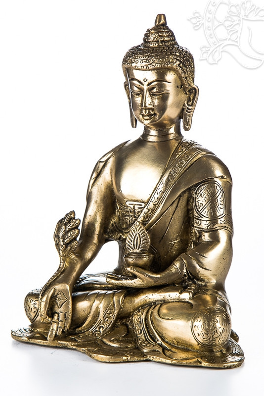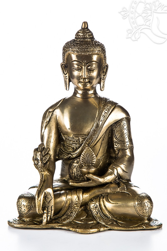 Aprólékosan kidolgozott, rézből készült Gyógyító Buddha szobor, matt sárga színű. Magassága 20 cm, súlya 2,00 kg.Gyógyító Buddha: