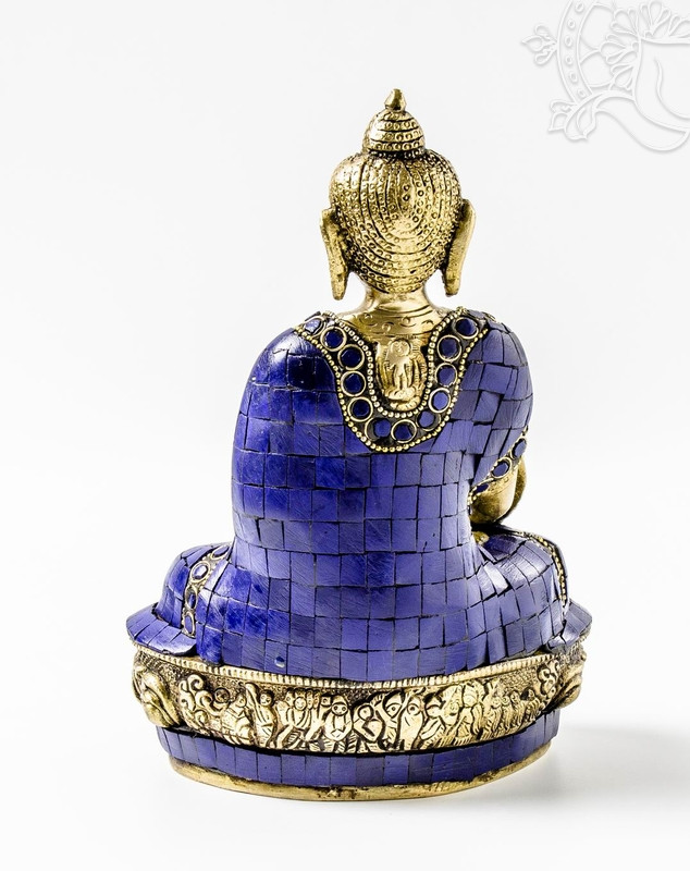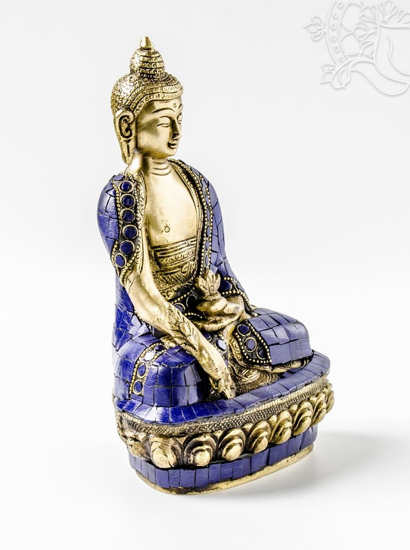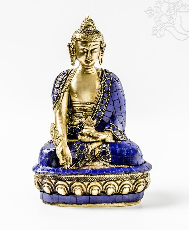 Rézből készült Gyógyító Buddha szobor, kék kővel berakott. A szobrok kövezése egyedileg történik, az egyes szobrok között a kövezésben kisebb különbségek lehetségesek. Magassága 21 cm.Gyógyító Buddha: