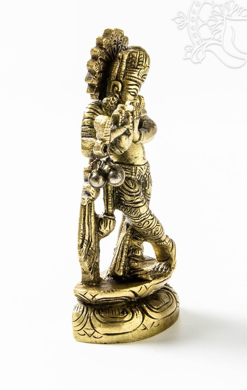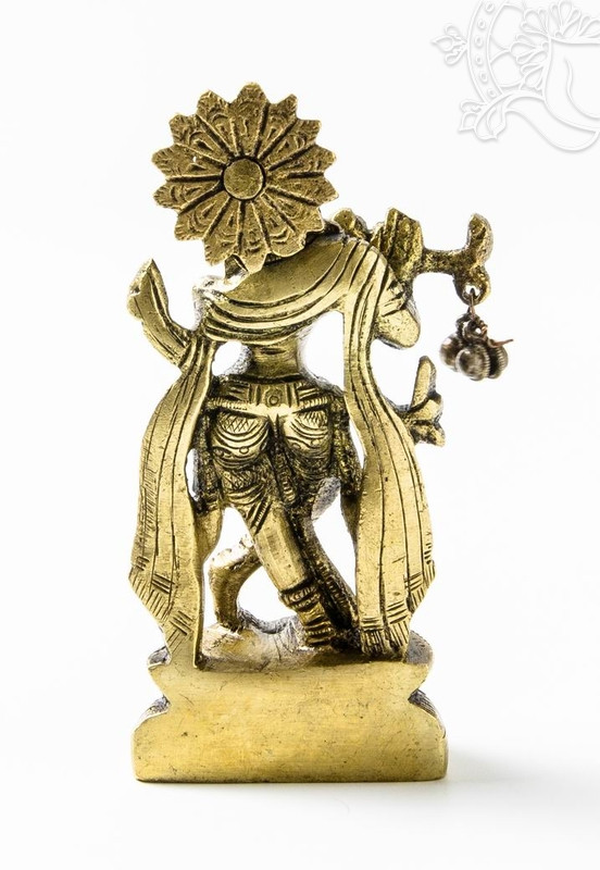 Rézből készült Krishna szobor, matt sárga színű. Magassága 10,5 cm, súlya 250 g.A Buddha szobrok jelentéseiről lásd: