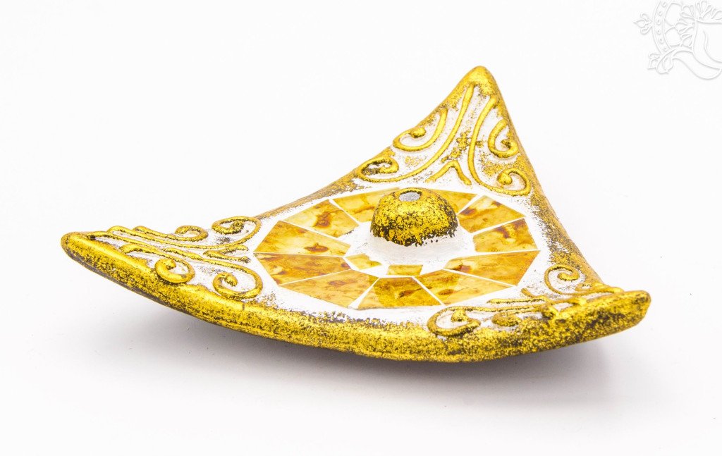 Mozaikos háromszög alakú kerámia füstölő égető - arany