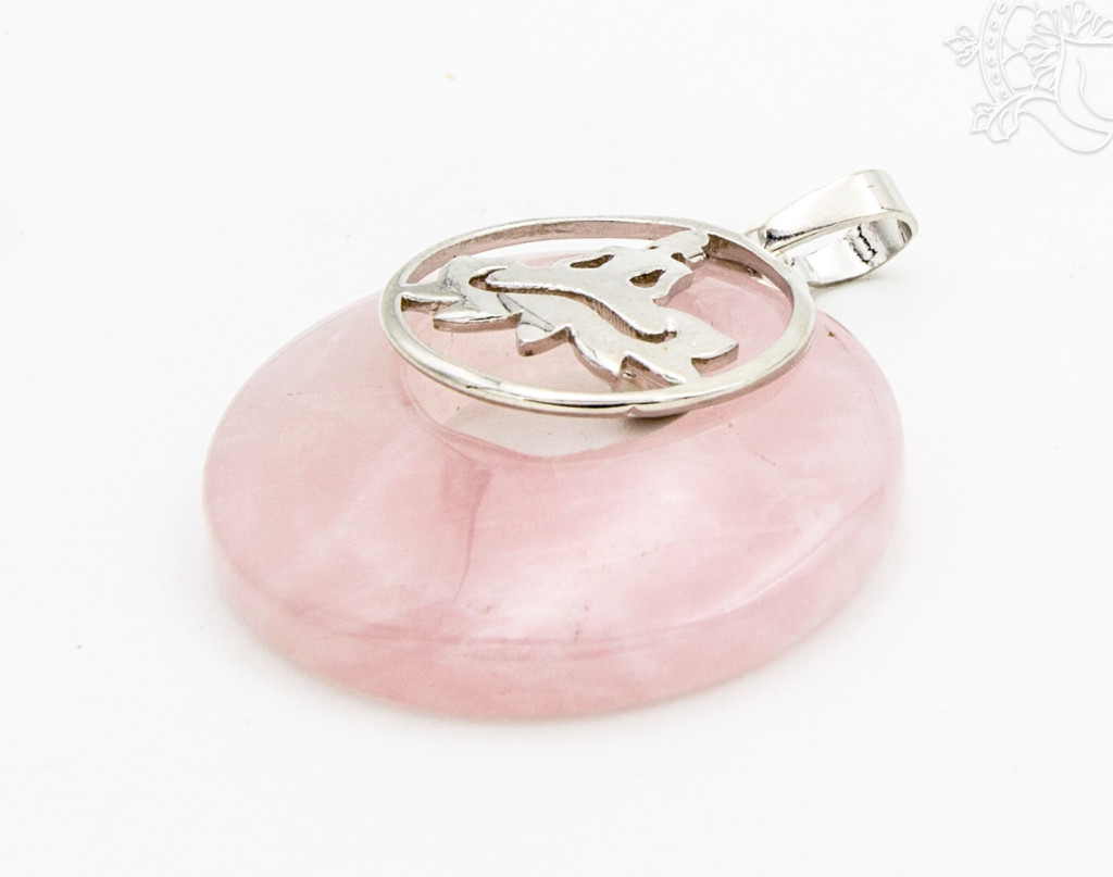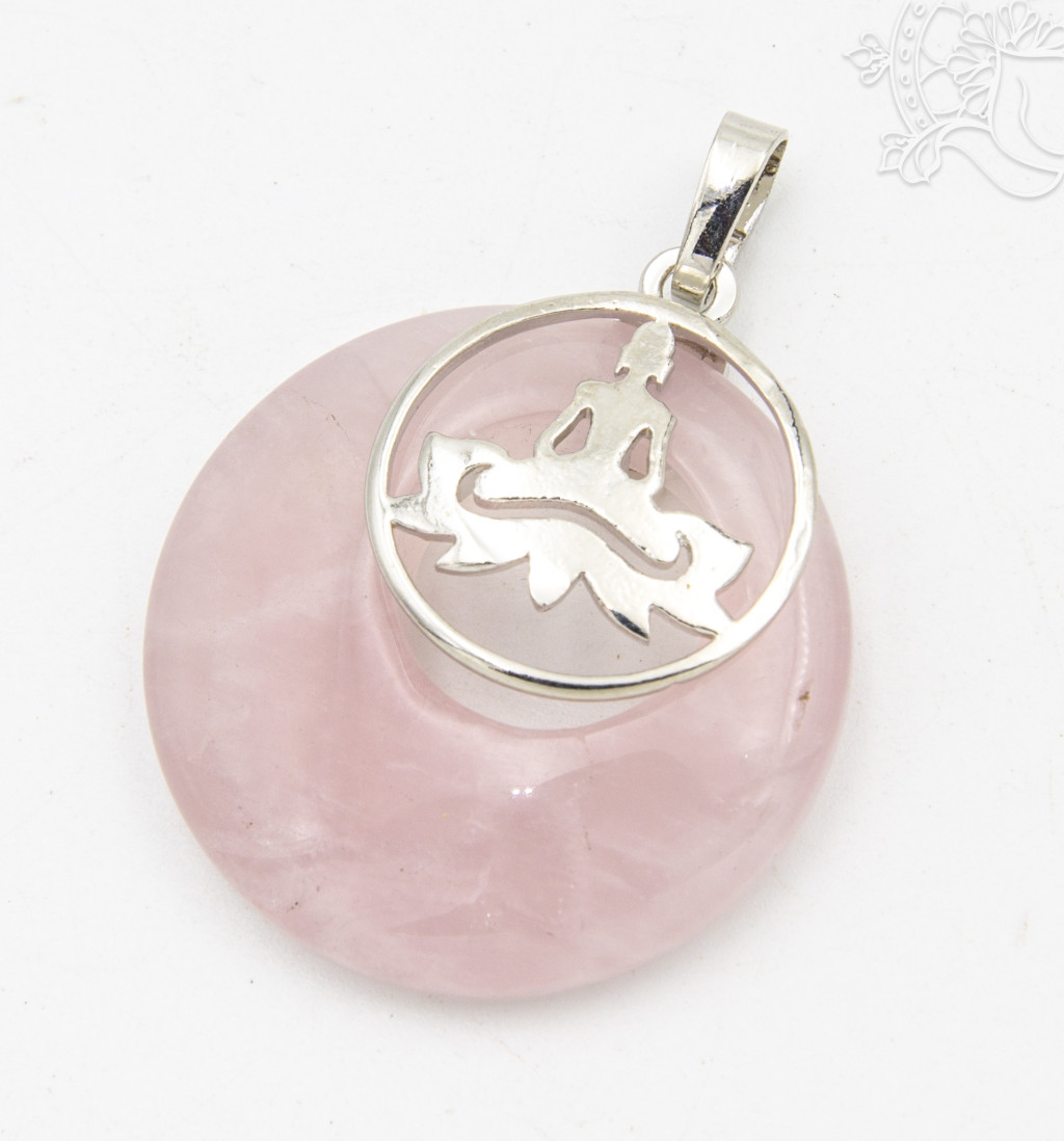 Rózsakvarc fánk alakú medál, Buddhával