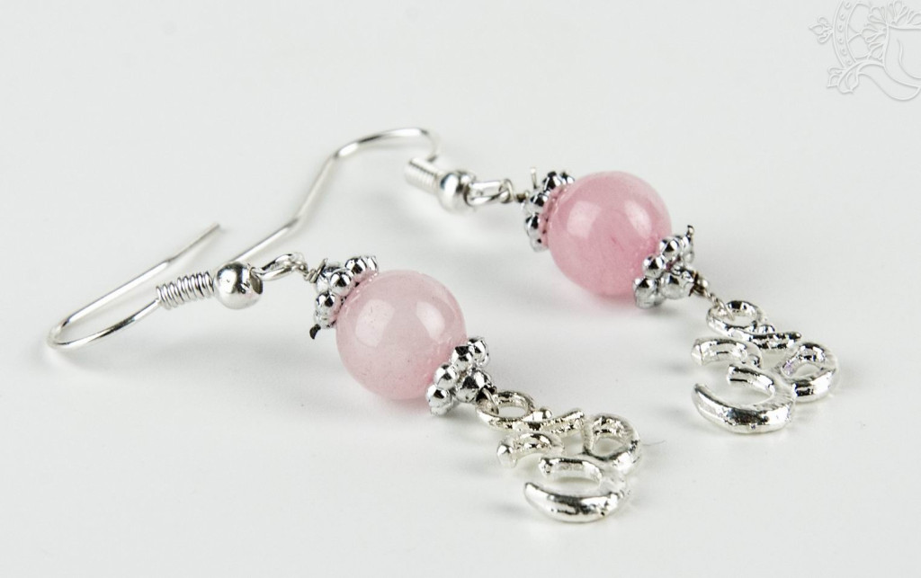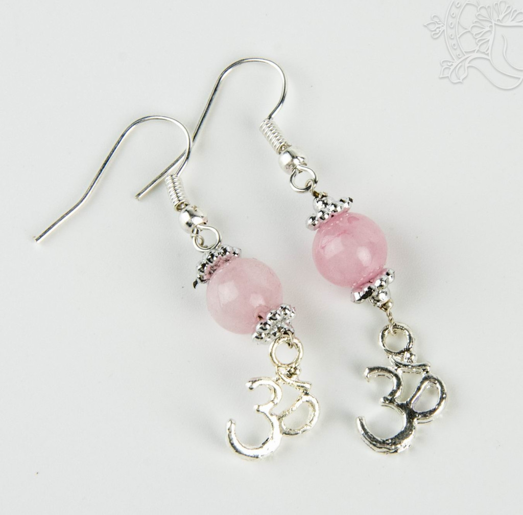Gömb alakú rózsakvarc fülbevaló, OM-mal. Hosszúsága akasztó nélkül 3 cm. Om: Lásd ITT ...
