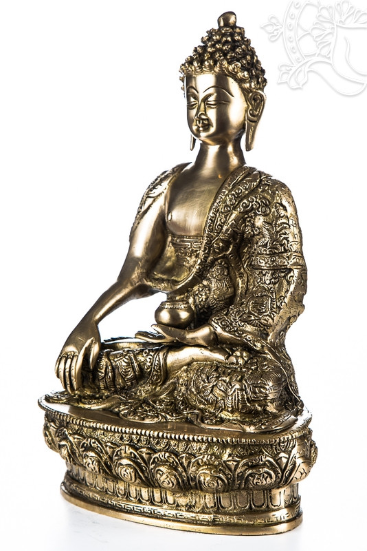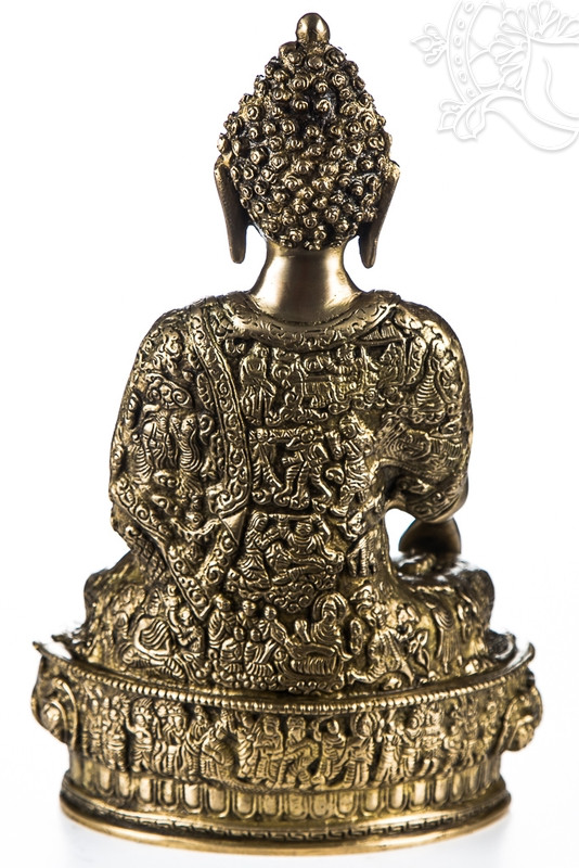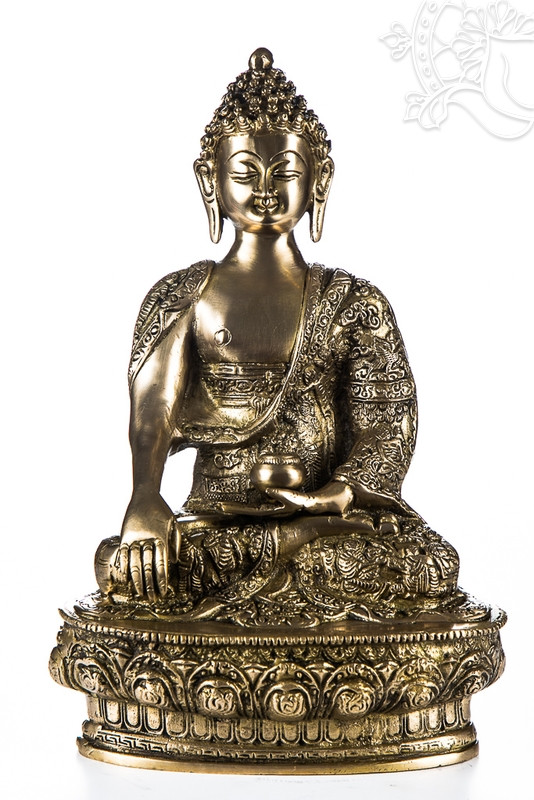 Rézből készült Shakyamuni Buddha szobor, matt sárga színű. Magassága 30 cm, súlya 3,4 kg.Shakyamuni Buddha: