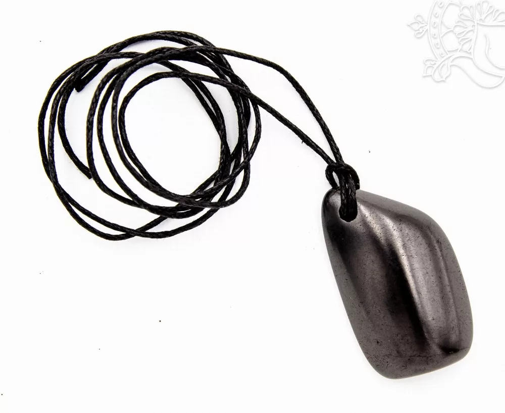 shungitból készült ásvány medál zsinóron