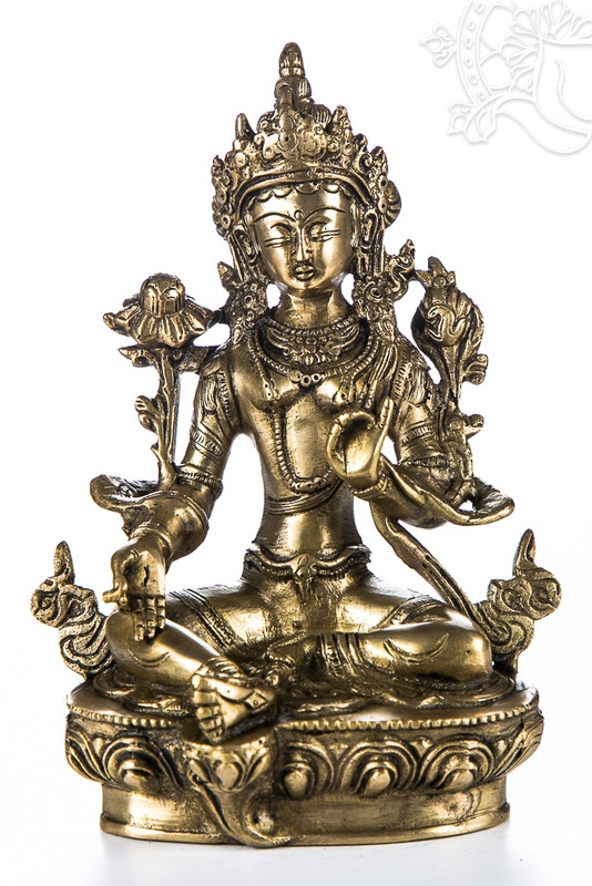 Zöld Tara réz szobor, matt sárga - 21 cm