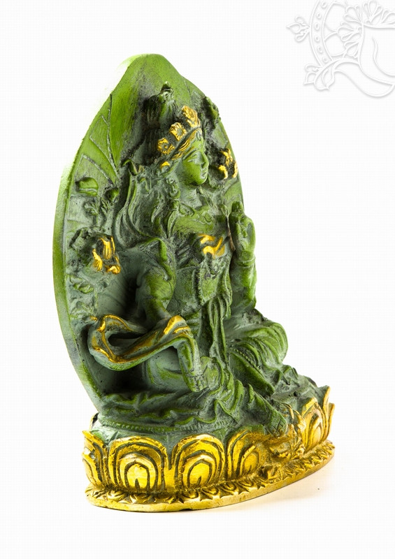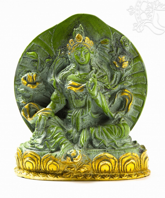 Zöld Tara réz szobor, zöld - arany színű - 14 cm