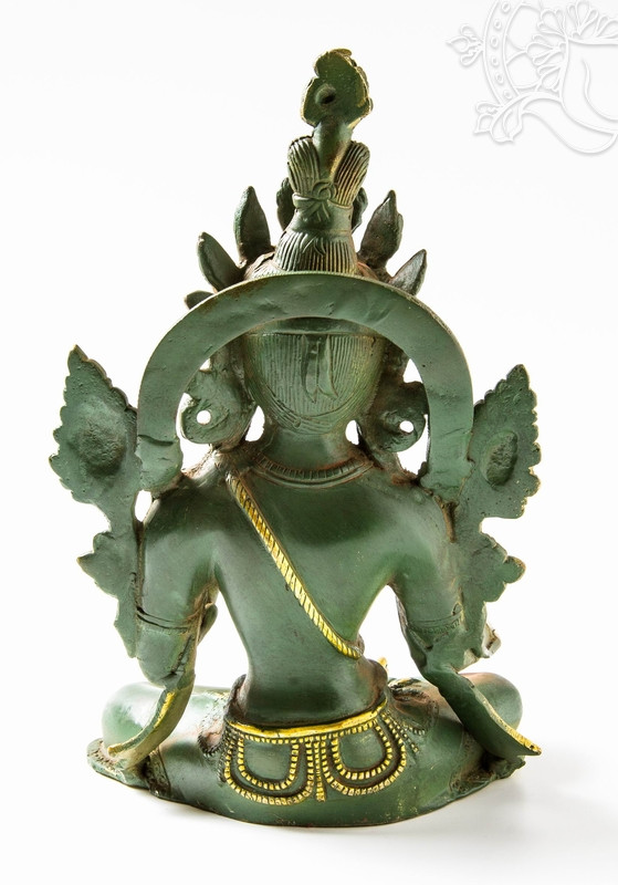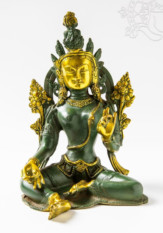 Zöld Tara réz szobor, zöld - arany színű - 27 cm